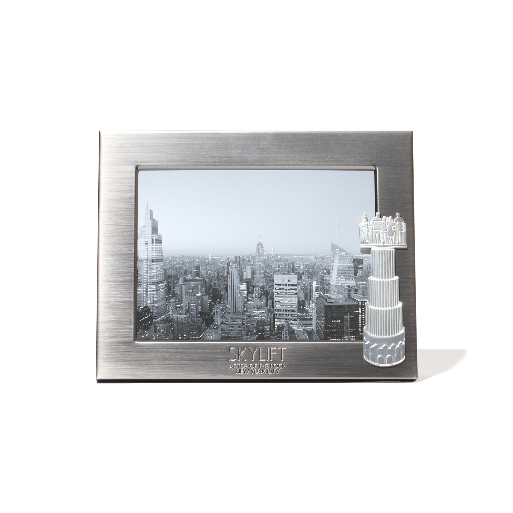 Display your favorite memories with this sleek 8x10 metal photo frame, featuring the iconic Skylift at Top of the Rock. Perfect for keepsake images or photos taken from the observation deck, it adds a modern NYC touch to your home or office décor.